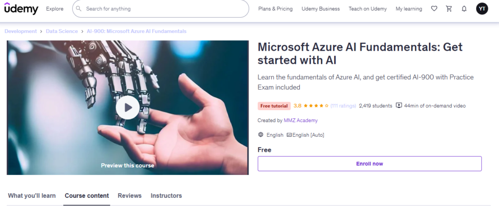 https://www.udemy.com/course/microsoft-azure-ai-fundamentals-get-started-with-ai/
